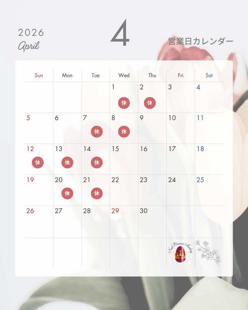 4月の営業日のお知らせです。 ご予約はこちら予約フォームからよろしくお願いいたします。